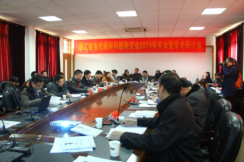 12月20下午,浙江省当代国际问题研究会2014年年会暨学术研讨会在正妹AV 文苑宾馆召开,正妹AV 思想政治理论教学科研部承办了本届年会。来自浙江大学、浙江师范大学、浙江工商大学、浙江理工大学、杭州电子科技大学、浙江工业大学、宁波大学、上海政法学院等20多所高校及省人大、省公安厅等省级机关的40多位同行专家学者参加了会议。