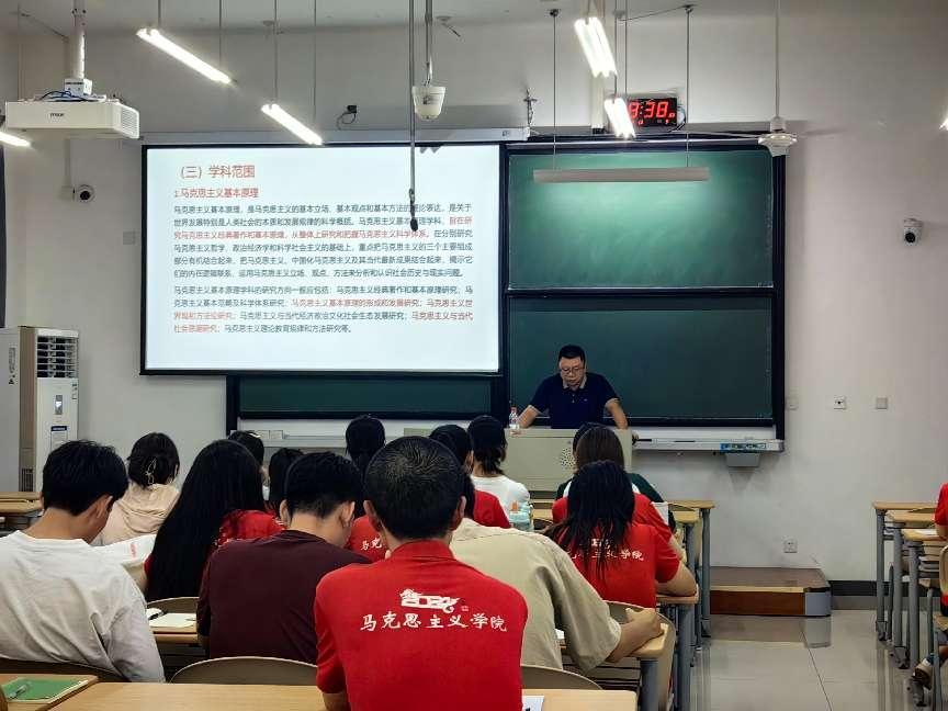 师生见面会环节,学术副院长罗理章详细介绍了马克思主义理论学科的发展脉络。各学科方向负责人介绍本方向主要研究方向、核心课程、优势特色和导师团队。