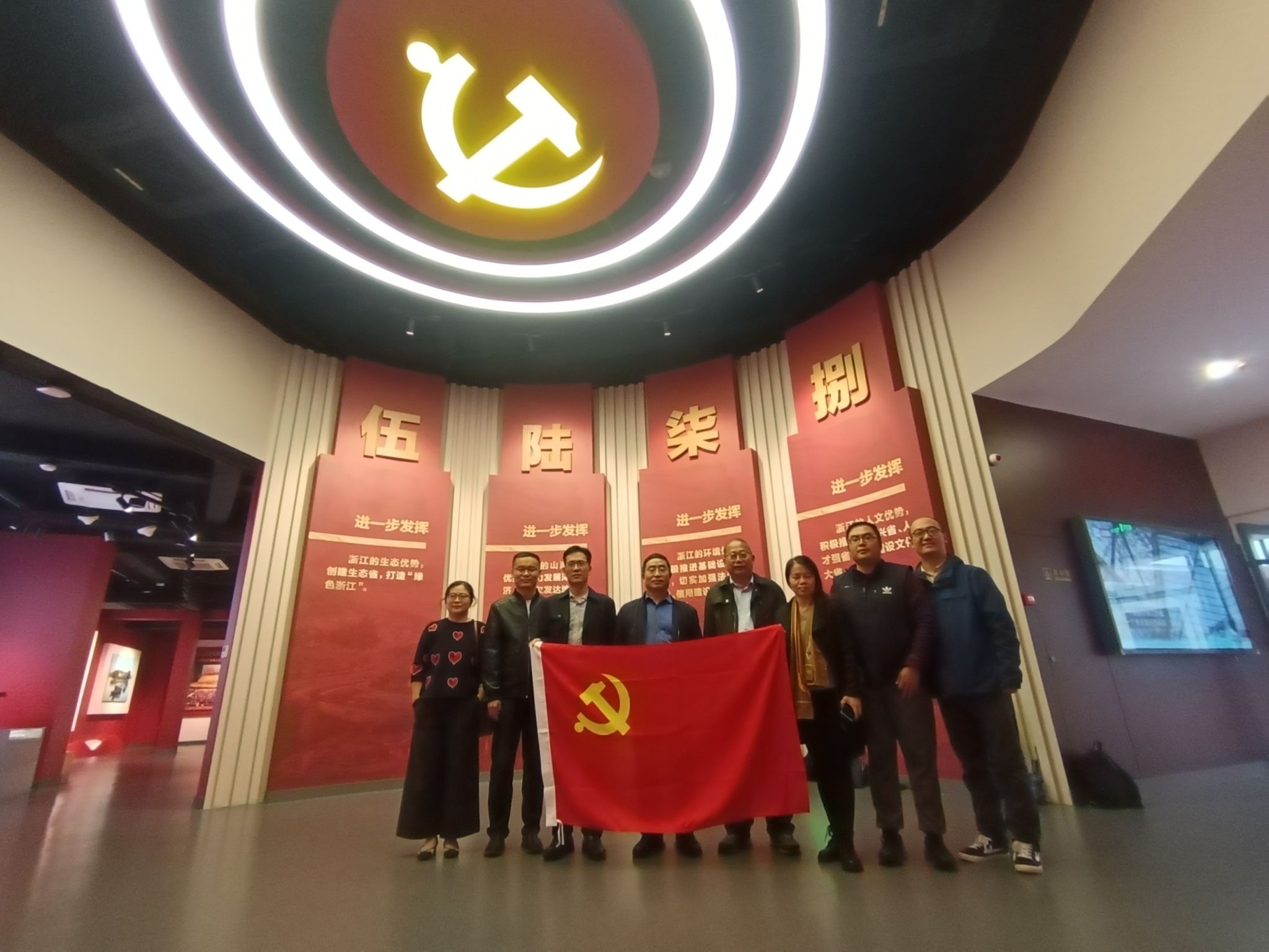 教工第一党支部一行八人来到南湖革命纪念馆二代馆参观“红船领航——‘八八战略’嘉兴实践主题展”。主题展通过丰富的图文资料、珍贵的历史记录和生动的多媒体展示,全面回顾了“八八战略”在嘉兴的生动实践历程。从经济转型升级到生态环境保护,从文化繁荣发展到民生福祉提升,每一个板块都展现了嘉兴在“八八战略”指引下取得的辉煌成就。在参观过程中,老师们无不为嘉兴市在“八八战略”指引下所取得的各项成就感到欣喜和自豪,三星村的现代风貌、幸福公交101路的生动故事,尤其是正妹AV
