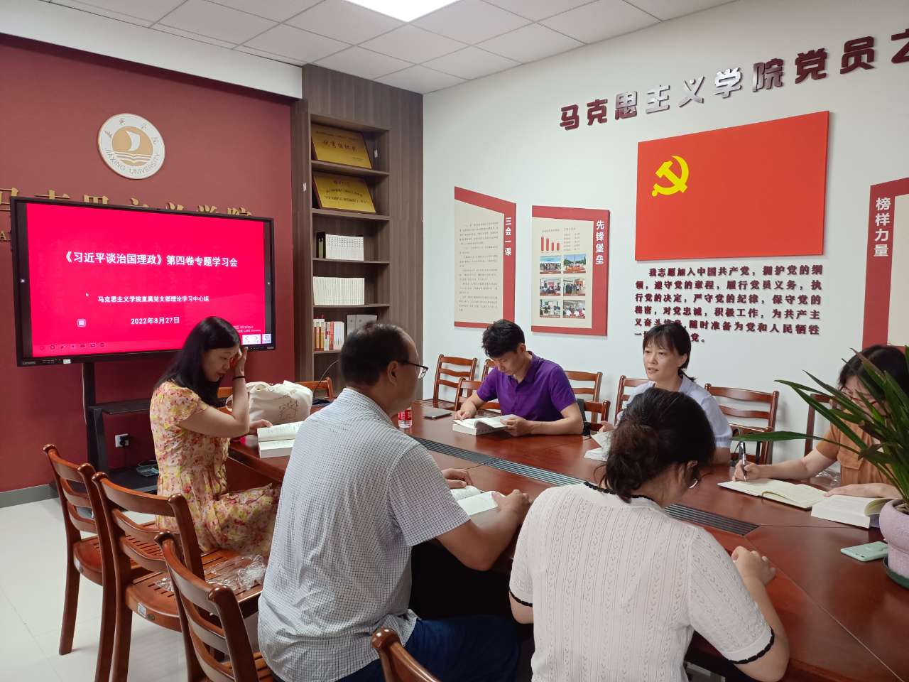 8月27日午,正妹AV 直属党支部理论学习中心组举行《习近平谈治国理政》第四卷专题学习会。院党支部书记宋之霞主持学习会。