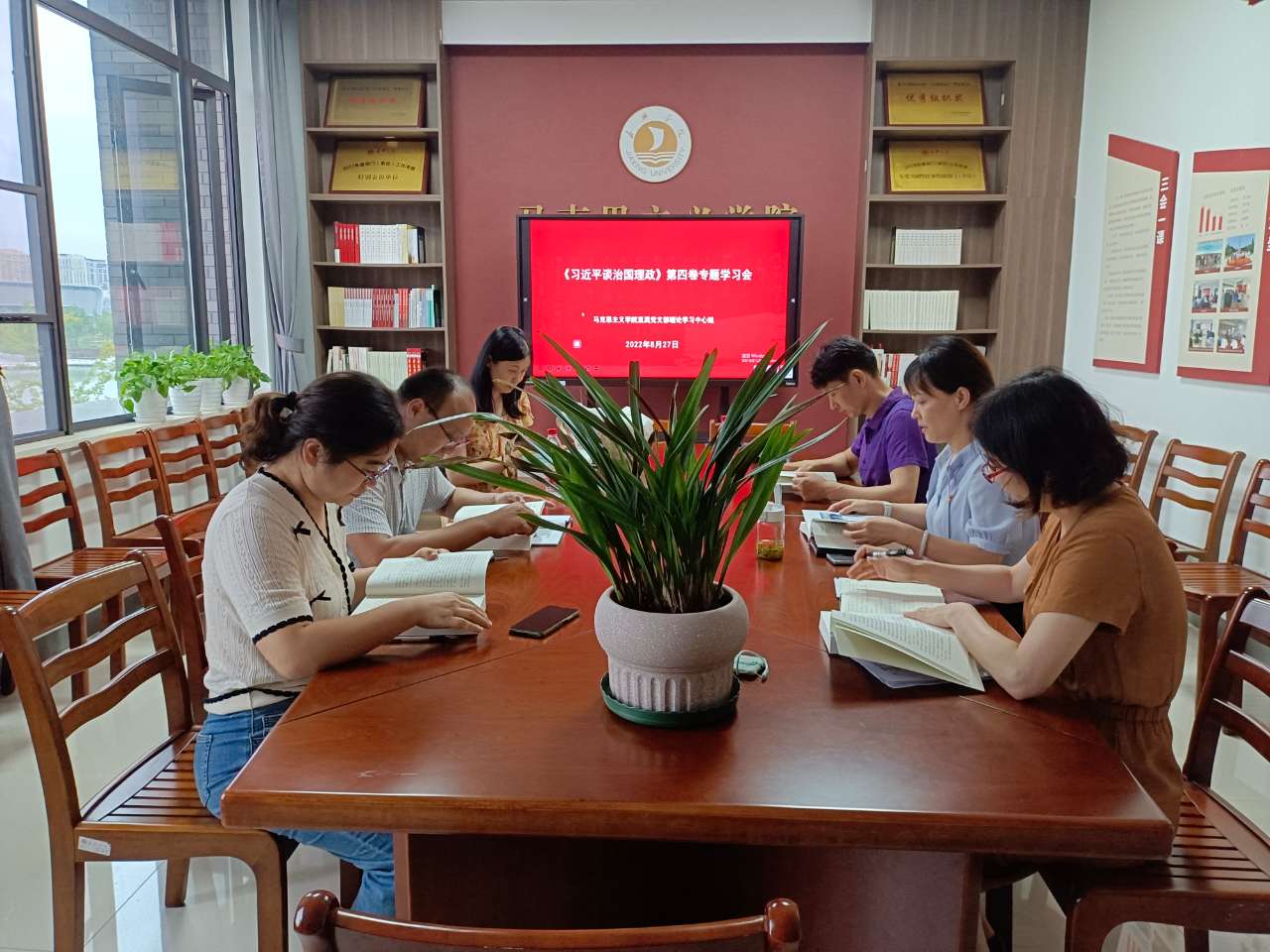 会前,学院理论学习中心组成员认真研读《习近平谈治国理政》第四卷。会上,宋之霞做领学主题发言,理论学习中心组成员围绕学习主题、结合思想和工作实际交流心得体会。宋之霞指出《习近平谈治国理政》第四卷生动记录了以习近平同志为核心的党中央,面对百年变局和世纪疫情相互叠加、世界进入新的动荡变革期的复杂局面,面对世所罕见、史所罕见的风险挑战,团结带领全党全国各族人民在中华大地上全面建成小康社会、开启全面建设社会主义现代化国家新征程的伟大实践,集中展现了马克思主义中国化的最新成果。她强调《习近平谈治国理政》1-4卷是学习习近平新时代中国特色社会主义思想最权威、最系统、最鲜活的原著原典。作为马克思主义理论工作者和思政课教师,我们一定要原原本本学、融会贯通学、结合思考学,将党的创新理论成果融入思政课堂,培育好担当民族复兴的时代新人。
