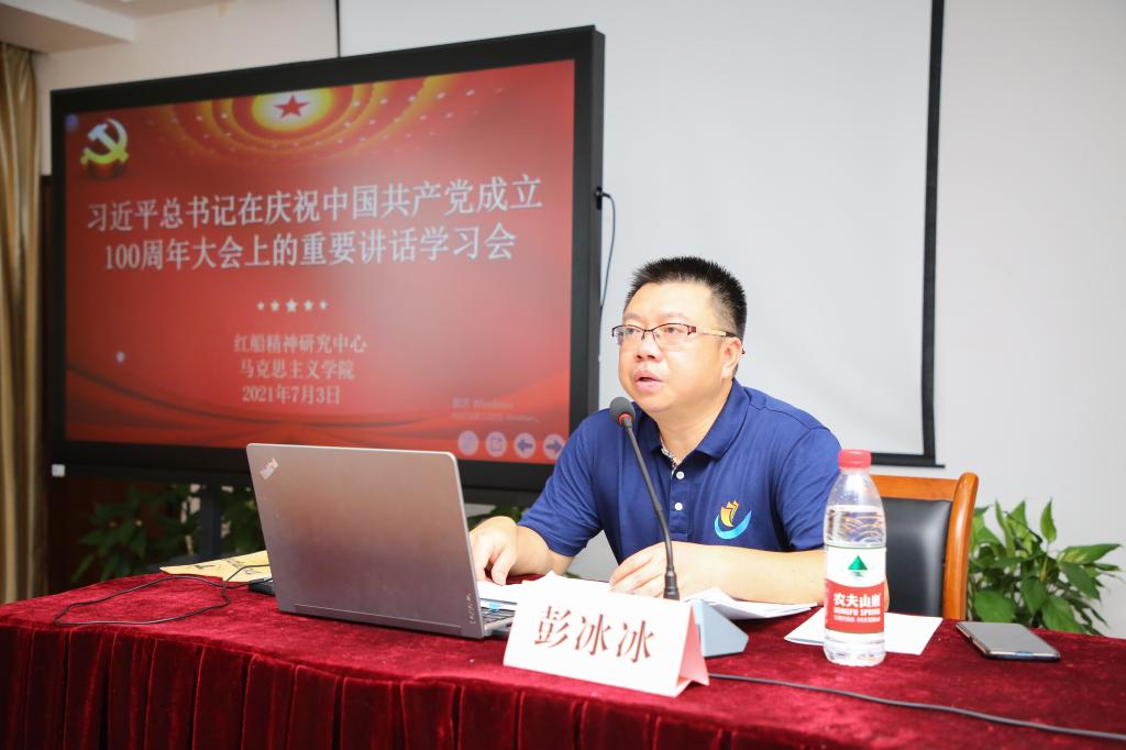 2021年7月3日下午,正妹AV 、红船精神研究中心共同组织召开习近平总书记在庆祝中国共产党成立100周年大会上的重要讲话学习会,特邀人文社科处处长彭冰冰教授为大家作专题学习辅导,并谈了参加此次庆祝大会的亲身感受。中心主任吕延勤研究员出席了学习会正妹AV 直属党支部书记宋之霞主持学习会