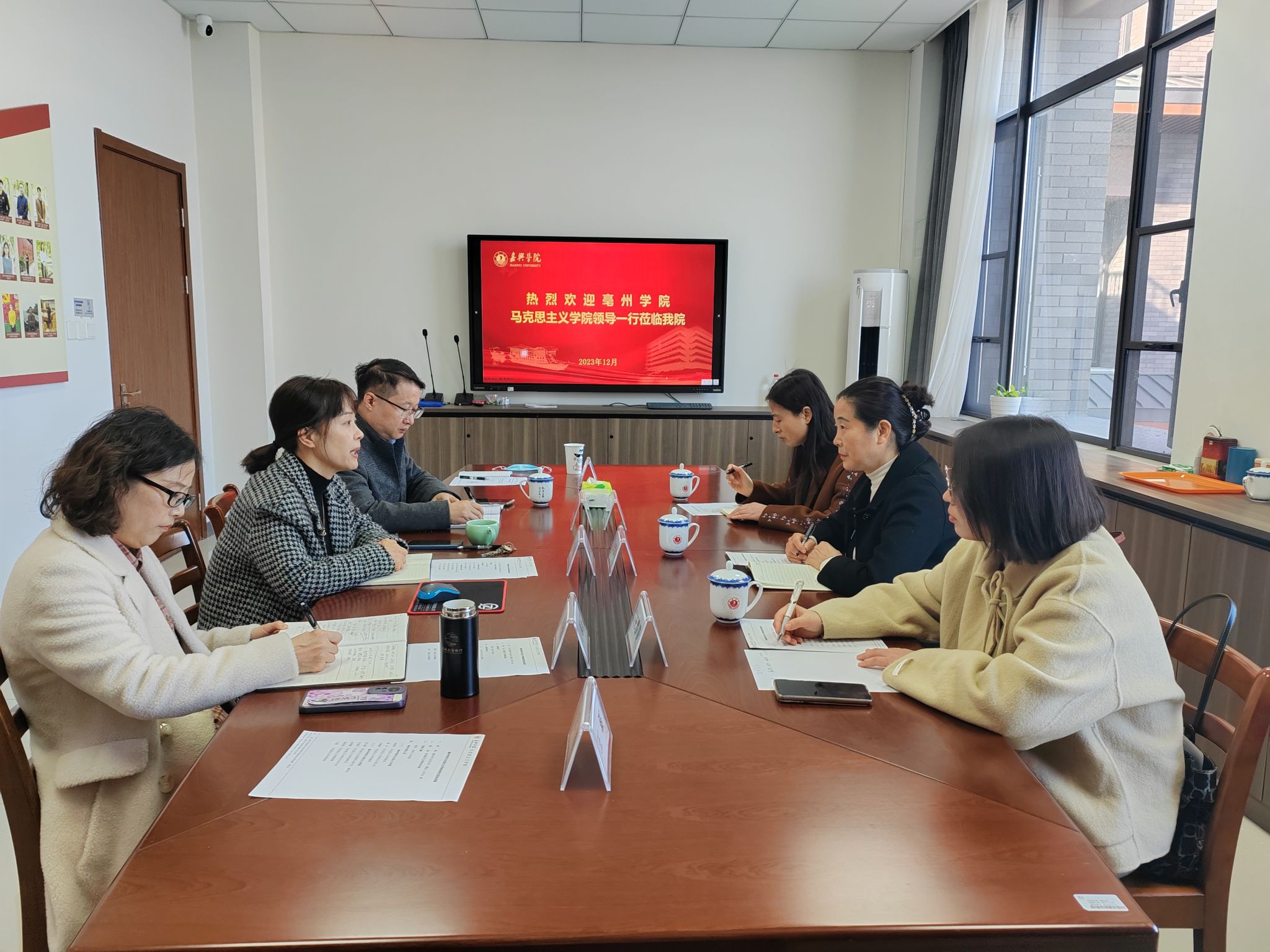 12月8日上午,亳州学院马克思主义学院院长张慧芳一行3人到正妹AV 交流座谈。正妹AV 书记宋之霞、副院长许惠芬、办公室主任余珊珊及部分专任教师参加了座谈。