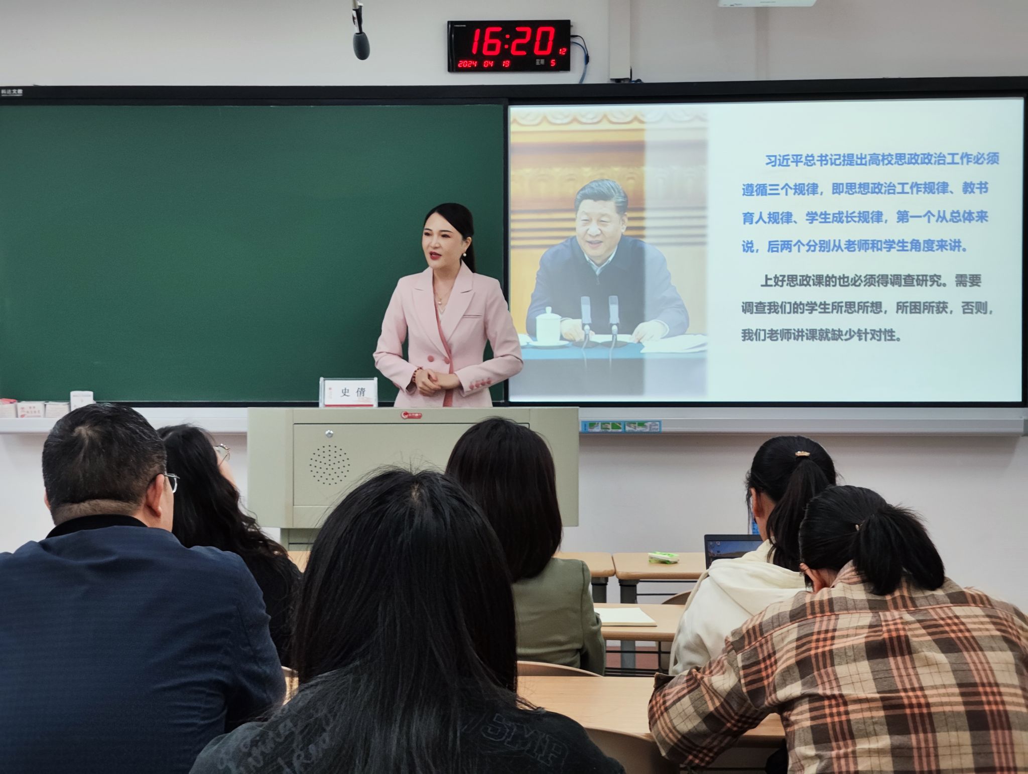 史倩采用生动的案例和深入浅出的讲述方式,向与会的教师们阐释了如何在课堂上让思政课"讲深、讲透、讲活",并强调必须"真学、真信、真懂、真用"才能达到培养学生正确世界观、人生观和价值观的目标。她指出,思政课教学不仅要坚持理论联系实际,更要注重理论的吸收与运用,使学生能够在参与实践的过程中加深对马克思主义理论的理解和认识。