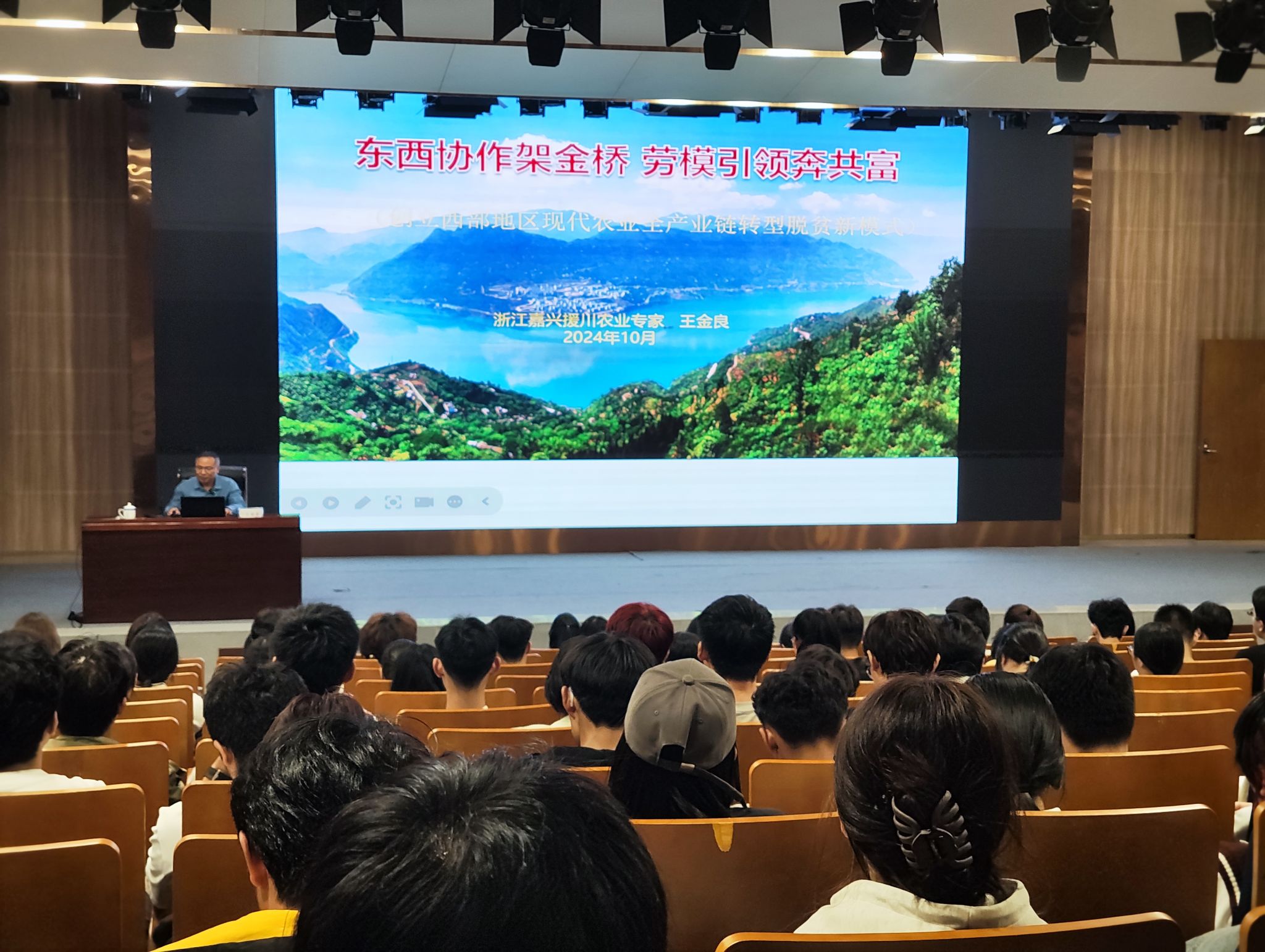 德法教研室主办的“劳模进课堂”系列讲座在校图书馆一楼报告厅举行,本次课邀请了全国先进工作者、全国“五一”劳动奖章获得者援川农业专家王金良为大家作题为“东西协作架金桥,劳模引领奔共富”的讲座。